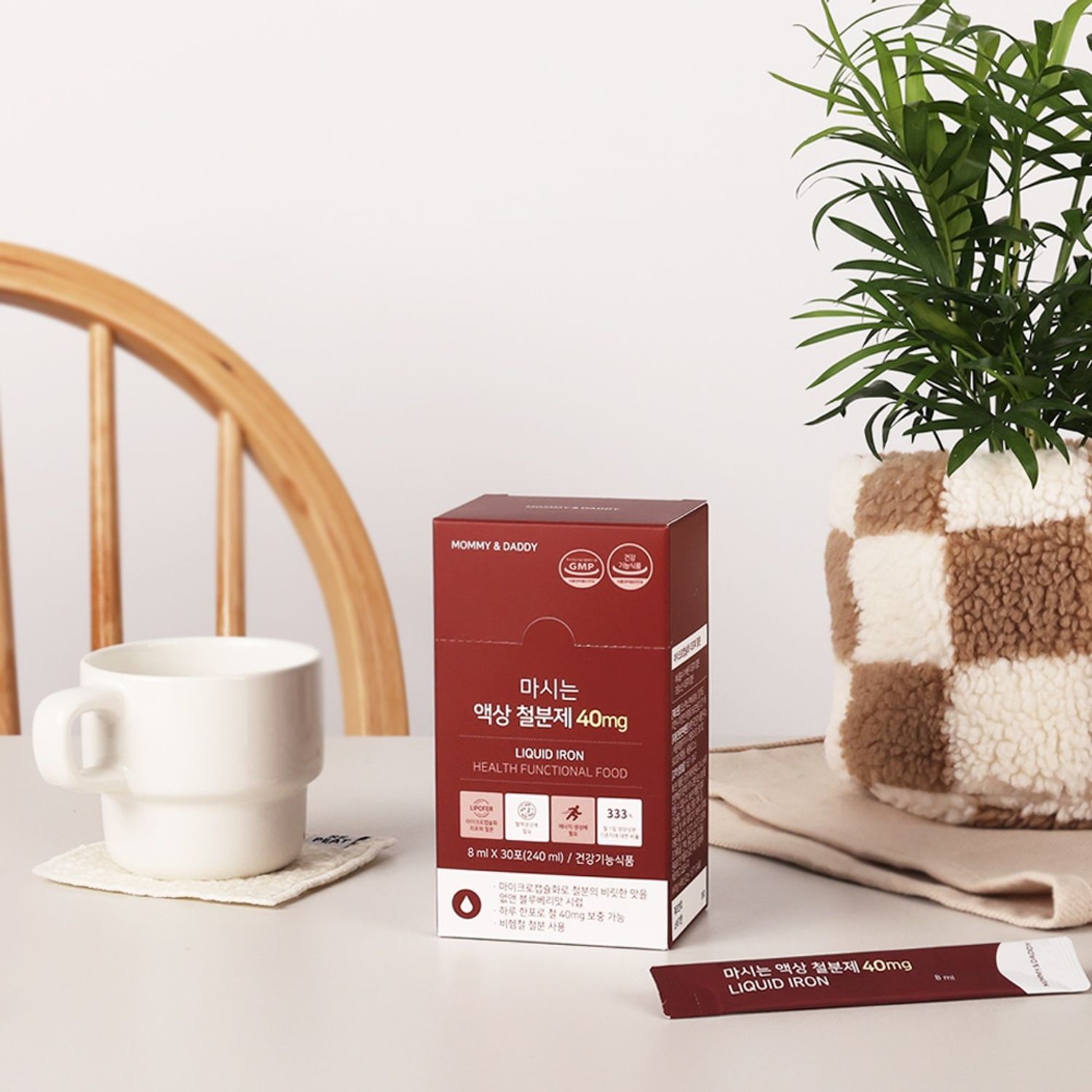 Төмрийн пирофосфат (эрдэс төмөр), эрдэнэшишийн цардуул, лецитин, цэвэршүүлсэн ус, D-сорбитол (чихэрлэгжүүлэгч), нэрсний амт, нимбэгийн хүчил, ксантан бохь, DL-алимны хүчил, сукралоз (чихэрлэгжүүлэгч), нэрсний баяжмал, С витамин.